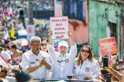 Lula desfila em Salvador e levanta placa pela taxação dos super-ricos