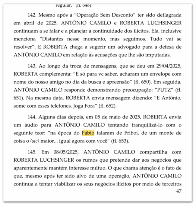 O nome de Lulinha não surge de maneira explícita no despacho judicial, mas aparece em meio a mensagens e movimentações financeiras analisadas pela PF no contexto da investigação contra a lobista Roberta Luchsinger, alvo de mandados de busca e apreensão. Segundo os investigadores, há diálogos que fazem referência a valores e a um possível destinatário descrito apenas como “o filho do rapaz”, expressão que levantou suspeitas e chamou a atenção dos investigadores.